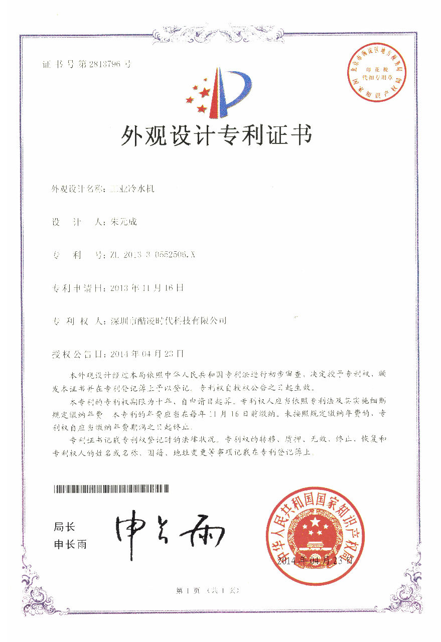 外觀設計專利證書-1